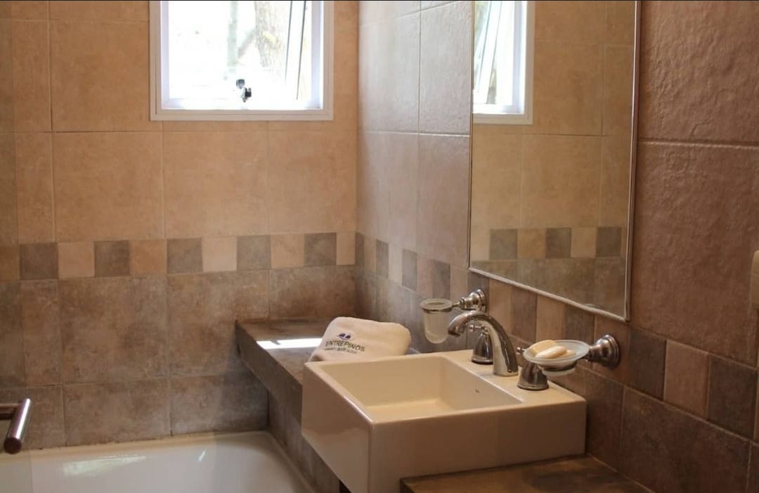 El complejo cuenta con una piscina atemperada con solarium, rodeada de un cerco perimetral para protección de los más pequeños. En el área central del predio se desarrolla también un espacio con juegos infantiles. Entrepinos es un espacio único donde podrá relajarse en completa armonía con la naturaleza.