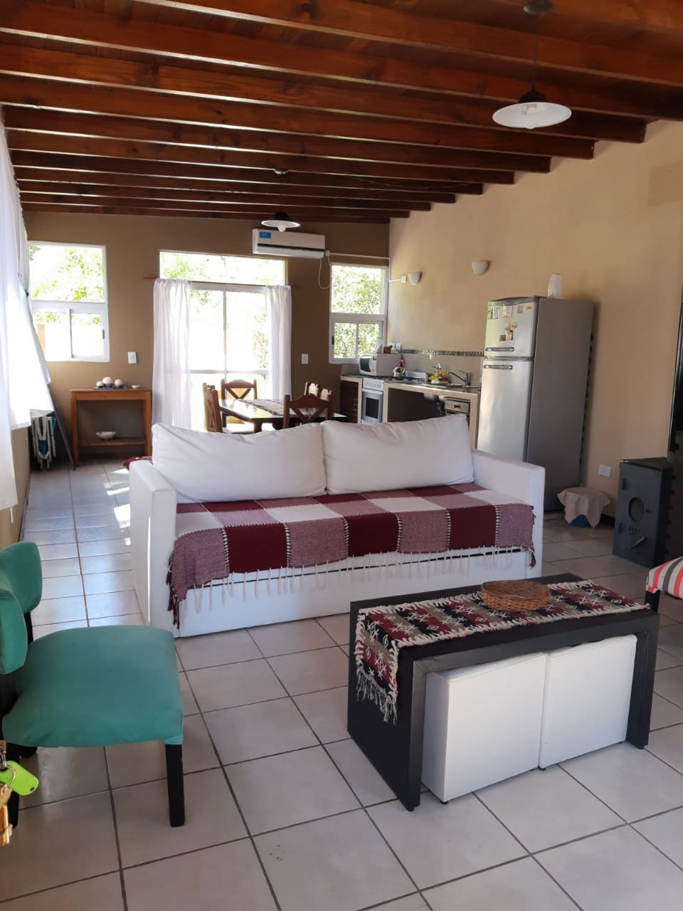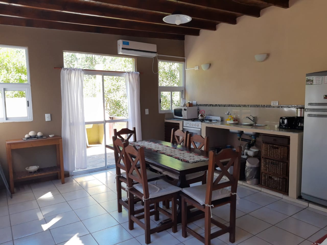 equipada con Smart tv con cable, Wifi, alarma monitoreada, microondas, cocina con horno, heladera con freezer, cafetera, tostadora, vajilla completa, aire acondicionado, salamandra, termotanque eléctrico de alta recuperación.